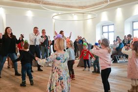 BU: Kinder des Kinderhauses Kunterbunt bei der Aufführung eines besonderen Geburtstagstanzes